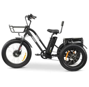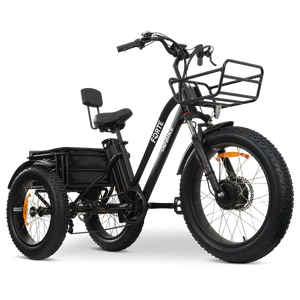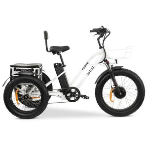 It's simple to get on and off this powerful step-through fat-tire electric trike. Our advanced hydraulic disc brakes provide the greatest stopping power with the least amount of effort. The all-terrain knobby tires are capable of handling any surface. It comes with front and rear metal baskets, making it a great alternative for both work and play. GOBIKE FORTE comes with an adjustable front suspension and a soft seat with a backrest for a more enjoyable ride.