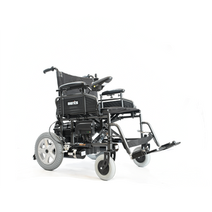 The Travel-Ease Folding Power Chair has the more discreet look of a manual wheelchair while still packing the punch of a traditional power wheelchair. With a max speed of 4 mph and a range of up to 18 miles when fully charged, this chair can go the extra mile. The foam-filled tires are durable and ideal for worry-free roaming. The Travel-Ease is available in six different seat widths from 16″ wide to 26″ wide. As the width increases so does the weightcapacity. Please see the chart below for weightcapacities. The chair also has an adjustable back from 15″ – 19″ soyou’re sure to get the perfect fit.