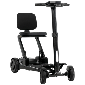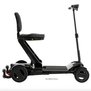 The Pride Go Go® Carbon (Model SC25) redefines portable mobility with cutting-edge innovation and ultralight design. Weighing just 35 lbs. without the battery, this scooter features a full carbon fiber frame, rims, and tiller, making it one of the lightest and most durable travel scooters on the market. It folds down in seconds and tows like luggage, providing unmatched convenience for users on the go.