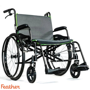 Unmatched Versatility: The Feather Chair HD was created following the success of the original Feather Chair, which features an 18-inch seat. By listening to customer feedback, Feather Mobility designed a heavy-duty wheelchair with a larger seat and increased weight capacity while maintaining the same high-quality, lightweight materials.