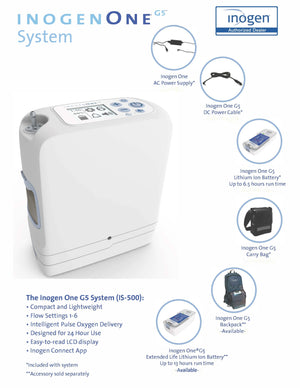 The Inogen One G5 package is more than just a device; it's a complete system designed to cater to every aspect of your oxygen therapy journey.