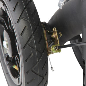 The Medline All-Terrain Knee Walker is equipped with dual handbrakes—each mounted on the handlebars—for responsive and balanced stopping power. Whether you’re gliding down a gentle slope or just need to slow before a turn, the brakes engage smoothly and predictably.