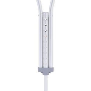 One size does not fit all—and with the Medline Push-Button Crutches, it doesn’t have to. Each crutch features a push-button height adjustment system that allows for quick, tool-free modifications to both the leg height and handgrip position. With clearly marked settings and a secure locking mechanism, you can personalize your crutches for optimal comfort and proper posture in just seconds.