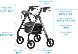The Nova Star 8 DX Bariatric Extra Wide Rollator is not just a mobility aid; it's a commitment to providing larger individuals with a safe, comfortable, and stylish way to stay active and independent. With a heavy-duty design boasting a remarkable 450 lb. weight capacity, this rollator is a game-changer for those seeking a reliable and feature-rich mobility solution.