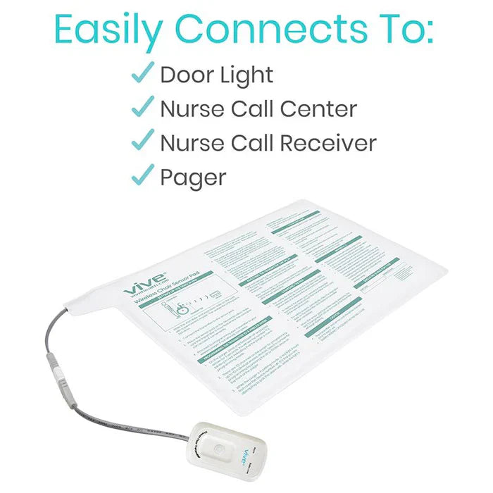 Minimize the risk of falls and injuries with the Vive Health Chair Alarm with Pager. Designed for caregivers, this system provides an easy way to monitor when a patient or loved one attempts to exit a chair or wheelchair, ensuring timely assistance and added peace of mind.