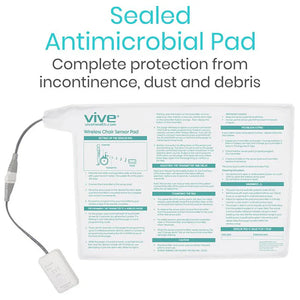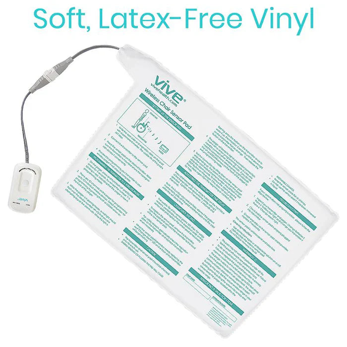 The 14” x 9.8” latex-free chair sensor pad is designed for long-lasting use. Completely sealed, it provides full protection against dust, dirt, and fluids, ensuring reliable performance in any care environment.