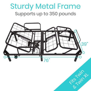 Sized to fit a twin or twin XL mattress, the adjustable electric bed frame is constructed with durable steel to support up to 350 pounds