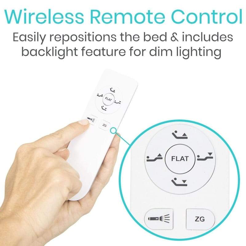 Easily adjust the bed frame in dim and darkened rooms with the backlit wireless remote control