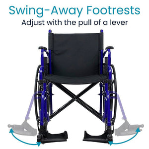 The first thing you’ll notice about Vive’s Heavy-Duty Wheelchair is the solid steel frame, capable of supporting up to 400 pounds. This makes it an exceptional choice for bariatric users or anyone who needs a chair that offers a little extra in terms of capacity and peace of mind.